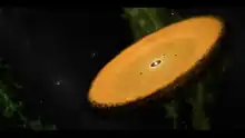 A Peter Pan disk is a circumstellar disk around a star or brown dwarf that appears to have retained enough gas to form a gas giant planet for much longer than the typically assumed gas dispersal timescale of approximately 5 million years. Several examples of such disks have been observed to orbit stars with spectral types of M or later. The presence of gas around these disks has generally been inferred from the total amount of radiation emitted from the disk at infrared wavelengths, and/or spectroscopic signatures of hydrogen accreting onto the star. To fit one specific definition of a Peter Pan disk, the source needs to have an infrared "color" of , an age of >20 Myr and spectroscopic evidence of accretion.[1][2]