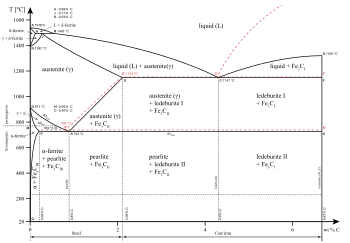 Iron-carbon phase diagram, showing the conditions necessary to form different phases