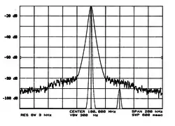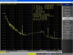Phase noise can be measured using a spectrum analyzer if the phase noise of the device under test (DUT) is large with respect to the spectrum analyzer's local oscillator. Care should be taken that observed values are due to the measured signal and not the shape factor of the spectrum analyzer's filters. Spectrum analyzer based measurement can show the phase-noise power over many decades of frequency; e.g., 1 Hz to 10 MHz. The slope with offset frequency in various offset frequency regions can provide clues as to the source of the noise; e.g., low frequency flicker noise decreasing at 30 dB per decade (= 9 dB per octave).[8]