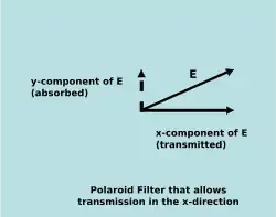 A linear filter transmits one component of a plane wave and absorbs the perpendicular component. In that case, if the filter is polarized in the x direction, the fraction of energy passing through the filter is