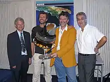Some of the Herschel-Planck team, from left to right: Jean-Jacques Juillet, director of scientific programmes, Thales Alenia Space; Marc Sauvage, project scientist for Herschel PACS experiment, CEA; François Bouchet, Planck operations manager, IAP; and Jean-Michel Reix, Herschel & Planck operations manager, Thales Alenia Space. Taken during presentations of the first results for the missions, Cannes, October 2009.