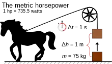 One metric horsepower is needed to lift 75 kilograms by 1 metre in 1 second.
