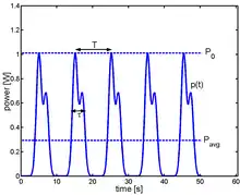 In the case of a periodic signal of period , like a train of identical pulses, the instantaneous power is also a periodic function of period . The peak power is simply defined by: