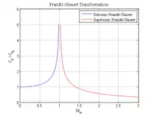 The PG transformation works well for all freestream Mach numbers up to 0.7 or so, or once transonic flow starts to appear.[2]