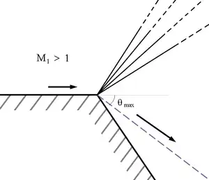 This places a limit on how much a supersonic flow can turn through, with the maximum turn angle given by,