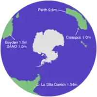 - 1.0 meter telescope at Canopus Observatory of the University of Tasmania, Australia
