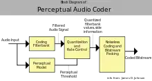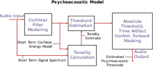Psychoacoustics is applied within many fields of software development, where developers map proven and experimental mathematical patterns in digital signal processing. Many audio compression codecs such as MP3 and Opus use a psychoacoustic model to increase compression ratios. The success of conventional audio systems for the reproduction of music in theatres and homes can be attributed to psychoacoustics[17] and psychoacoustic considerations gave rise to novel audio systems, such as psychoacoustic sound field synthesis.[18] Furthermore, scientists have experimented with limited success in creating new acoustic weapons, which emit frequencies that may impair, harm, or kill.[19] Psychoacoustics are also leveraged in sonification to make multiple independent data dimensions audible and easily interpretable.[20] This enables auditory guidance without the need for spatial audio and in sonification computer games[21] and other applications, such as drone flying and image-guided surgery.[22] It is also applied today within music, where musicians and artists continue to create new auditory experiences by masking unwanted frequencies of instruments, causing other frequencies to be enhanced. Yet another application is in the design of small or lower-quality loudspeakers, which can use the phenomenon of missing fundamentals to give the effect of bass notes at lower frequencies than the loudspeakers are physically able to produce (see references).