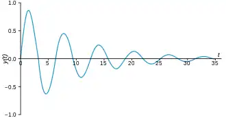 where M is the mass, k is the spring constant, and D is the damping coefficient, defined by the equation Fdamping = Dv, where v is the velocity.[24]