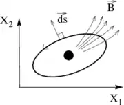 where we define the normal vector as illustrated. The advantage of this point of view is in the intuition that it gives for the result: is related to the flux of a field which is created (so to say) by "magnetic charges" in space. In practice the calculation of is done using the following formula: