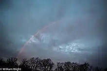 A sleetbow forms in the same way as a typical rainbow, with the exception that it occurs when light passes through falling sleet (ice pellets) instead of liquid water. As light passes through the sleet, the light is refracted causing the rare phenomena. These have been documented across United States with the earliest publicly documented and photographed sleetbow being seen in Richmond, Virginia on 21 December 2012.[59] Just like regular rainbows, these can also come in various forms, with a monochrome sleetbow being documented on 7 January 2016 in Valparaiso, Indiana.