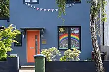 The rainbow was adopted as a symbol of hope during the COVID-19 pandemic, especially during periods of lockdown. Households worldwide displayed home-made images of rainbows in their windows, often alongside positive messages.[11]