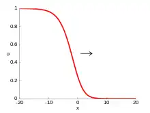 is also referred to as the Kolmogorov–Petrovsky–Piskunov equation.[2] If the reaction term vanishes, then the equation represents a pure diffusion process. The corresponding equation is Fick's second law. The choice R(u) = u(1 − u) yields Fisher's equation that was originally used to describe the spreading of biological populations,[3] the Newell–Whitehead-Segel equation with R(u) = u(1 − u2) to describe Rayleigh–Bénard convection,[4][5] the more general Zeldovich–Frank-Kamenetskii equation with R(u) = u(1 − u)e-β(1-u) and 0 < β < (Zeldovich number) that arises in combustion theory,[6] and its particular degenerate case with R(u) = u2u3 that is sometimes referred to as the Zeldovich equation as well.[7]