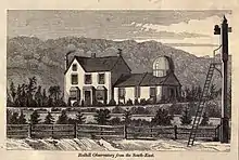 Carrington was born at Chelsea, the second son of Richard Carrington, the proprietor of a large brewery at Brentford, and his wife Esther Clarke Aplin.[4] He entered Trinity College, Cambridge, in 1844; but, though destined for the church, rather by his father's than by his own desire, his scientific tendencies gradually prevailed, and received a final impulse towards practical astronomy from Professor Challis's lectures on the subject. This change in the purpose of his life was unopposed, and he had the prospect of ample means; so that it was purely with the object of gaining experience that he applied, shortly after taking his degree as thirty-sixth wrangler in 1848,[4] for the post of observer in the University of Durham. He entered upon his duties there in October 1849,[4] but soon became dissatisfied with their narrow scope. The observatory was ill supplied with instruments,[4] and the leisure left him for study served only to widen his aims. Friedrich Bessel's and Friedrich Wilhelm Argelander's star-zones, above all, struck him as a model for imitation, and he resolved to complete by extending them to the pole. Desirous of advancing so far beyond his predecessors as to include in his survey stars of the tenth magnitude, he vainly applied for a suitable instrument, and at last, hopeless of accomplishing any part of his design at Durham, or of benefiting by any further stay, he resigned his position there in March 1852. He had not, however, been idle. Some of his observations, especially of minor planets and comets, made with a Fraunhofer equatorial of 6½ inches aperture, had been published, in a provisional state, in the 'Monthly Notices' and 'Astronomische Nachrichten,' and the whole were definitively embodied in a volume entitled 'Results of Astronomical Observations made at the Observatory of the University, Durham, from October 1849 to April 1852’ (Durham, 1855). His admission as a member of the Royal Astronomical Society (RAS), 14 March 1851, conveyed a prompt recognition of his exceptional merits as an observer.