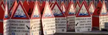 In the United States, some beaches have signs created by the National Oceanic and Atmospheric Administration (NOAA) and United States Lifesaving Association, explaining what a rip current is and how to escape one. These signs are titled, "Rip Currents; Break the Grip of the Rip".[8] Two of these signs are shown in the image at the top of this article. Beachgoers can get information from lifeguards, who are always watching for rip currents, and who will move their safety flags so that swimmers can avoid rips.