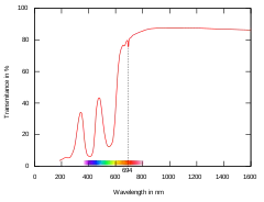 One of the first applications for the ruby laser was in rangefinding. By 1964, ruby lasers with rotating prism q-switches became the standard for military rangefinders, until the introduction of more efficient Nd:YAG rangefinders a decade later. Ruby lasers were used mainly in research.[5] The ruby laser was the first laser used to optically pump tunable dye lasers and is particularly well suited to excite laser dyes emitting in the near infrared.[6] Ruby lasers are rarely used in industry, mainly due to low efficiency and low repetition rates. One of the main industrial uses is drilling holes through diamond, because ruby's high-powered beam closely matches diamond's broad absorption band (the GR1 band) in the red.[5][7]