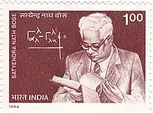 Satyendra Nath Bose FRS, MP[3] (/ˈboʊs/;[4][lower-alpha 1] 1 January 1894 – 4 February 1974) was an Indian theoretical physicist and mathematician. He is best known for his work on quantum mechanics in the early 1920s, in developing the foundation for Bose–Einstein statistics and the theory of the Bose–Einstein condensate. A Fellow of the Royal Society, he was awarded India's second highest civilian award, the Padma Vibhushan, in 1954 by the Government of India.[5][6][7]