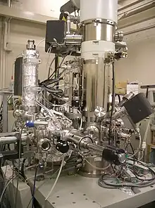 The technique was not developed further until the 1970s, when Albert Crewe at the University of Chicago developed the field emission gun[5] and added a high-quality objective lens to create a modern STEM. He demonstrated the ability to image atoms using an annular dark field detector. Crewe and coworkers at the University of Chicago developed the cold field emission electron source and built a STEM able to visualize single heavy atoms on thin carbon substrates.[6]