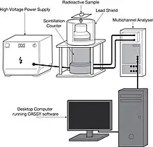 A scintillation counter is an instrument for detecting and measuring ionizing radiation by using the excitation effect of incident radiation on a scintillating material, and detecting the resultant light pulses.