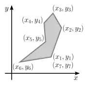 where are the coordinates of the -th polygon vertex, for . Also, are assumed to be equal to the coordinates of the first vertex, i.e., and .[6][7] [8] [9]