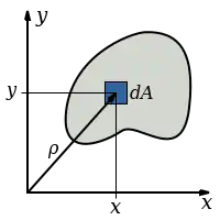 The equation describing the polar moment of area is a multiple integral over the cross-sectional area, , of the object.