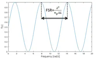 where, is an amplitude coefficient and is the group index. It is possible to carry out the conversion appropriately by calibrating the path difference at any optical frequency (therefore to any laser wavelength). The path difference determines both the Free Spectral Range (FSR) of the instrument, coinciding with the bandwidth between two consecutive peaks of the transfer function, and the filter sensitivity. In particular, if the length of the Mach-Zehnder's path difference is large, then the sensitivity of the filter will be high, so that the converted signal amplitude is increased; while, if the length of the Mach-Zehnder's path difference is small, then the sensitivity of the filter will be low, so that the converted signal amplitude is reduced: [6]