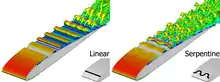 The serpentine plasma actuator represents a broad class of plasma actuator. The actuators vary from the standard type in that their electrode geometry has been modified in to be periodic across its span.[1][2]