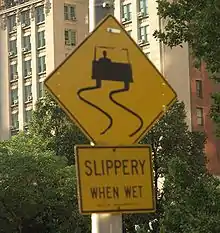 Sliding may occur between two objects of arbitrary shape, whereas rolling friction is the frictional force associated with the rotational movement of a somewhat disclike or other circular object along a surface. Generally, the frictional force of rolling friction is less than that associated with sliding kinetic friction.[1] Typical values for the coefficient of rolling friction are less than that of sliding friction.[2] Correspondingly sliding friction typically produces greater sound and thermal bi-products. One of the most common examples of sliding friction is the movement of braking motor vehicle tires on a roadway, a process which generates considerable heat and sound, and is typically taken into account in assessing the magnitude of roadway noise pollution.[3]