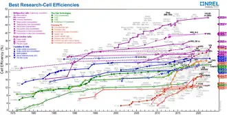 In 2023, solar power systems generated 5% of the world's electricity,[65] compared to 1% in 2015, when the Paris Agreement to limit climate change was signed.[66] Along with onshore wind, in most countries, the cheapest levelised cost of electricity for new installations is utility-scale solar.[67][68]