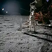 The Earth's Moon has no atmosphere or intrinsic magnetic field, and consequently its surface is bombarded with the full solar wind. The Project Apollo missions deployed passive aluminum collectors in an attempt to sample the solar wind, and lunar soil returned for study confirmed that the lunar regolith is enriched in atomic nuclei deposited from the solar wind. These elements may prove useful resources for future lunar colonies.[64]