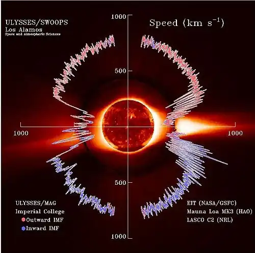 In 1990, the Ulysses probe was launched to study the solar wind from high solar latitudes. All prior observations had been made at or near the Solar System's ecliptic plane.[23]