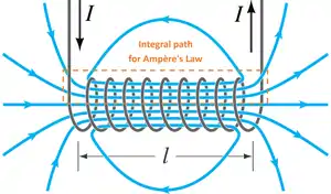 Applying Ampère's circuital law to the solenoid (see figure on the right) gives us