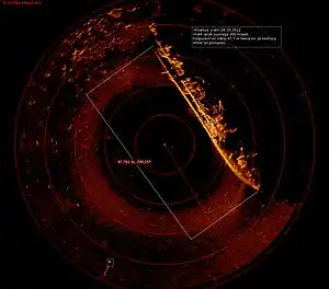 The use of sound to "echo-locate" underwater in the same way as bats use sound for aerial navigation seems to have been prompted by the Titanic disaster of 1912.[8] The world's first patent for an underwater echo-ranging device was filed at the British Patent Office by English meteorologist Lewis Fry Richardson a month after the sinking of Titanic,[9] and a German physicist Alexander Behm obtained a patent for an echo sounder in 1913.[10]