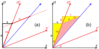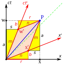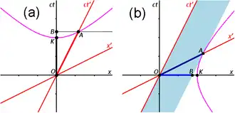 with some positive real constant. These equations describe two families of hyperbolae in an x–ct spacetime diagram, which are termed invariant hyperbolae.