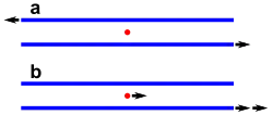 In special relativity, however, the distance between two points is no longer the same if measured by two different observers, when one of the observers is moving, because of Lorentz contraction. The situation is even more complicated if the two points are separated in time as well as in space. For example, if one observer sees two events occur at the same place, but at different times, a person moving with respect to the first observer will see the two events occurring at different places, because, from their point of view, they are stationary, and the position of the event is receding or approaching. Thus, a different measure must be used to measure the effective "distance" between two events.[31]: 48–50, 100–102