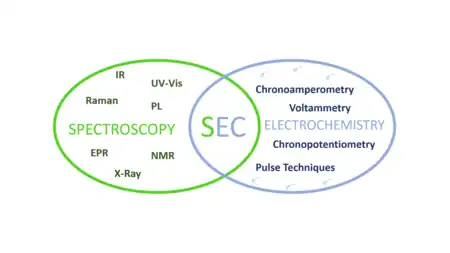 Spectroelectrochemistry (SEC) is a set of multi-response analytical techniques in which complementary chemical information (electrochemical and spectroscopic) is obtained in a single experiment. Spectroelectrochemistry provides a whole vision of the phenomena that take place in the electrode process.[1][2][3][4][5] The first spectroelectrochemical experiment was carried out by Theodore Kuwana, PhD, in 1964.[6]