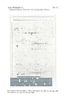 Atomic spectra comparison table, from "Spektroskopische Methoden der analytischen Chemie" (1922).