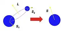the spin angular momentum of the single, coalesced hole. Neglecting the angular momentum that is carried away by gravitational waves during the final plunge—which is small[2]—conservation of angular momentum implies