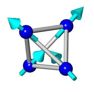 Spin ices are materials that consist of regular corner-linked tetrahedra of magnetic ions, each of which has a non-zero magnetic moment, often abridged to "spin", which must satisfy in their low-energy state a "two-in, two-out" rule on each tetrahedron making the crystalline structure (see figure 2). This is highly analogous to the two-near, two far rule in water ice (see figure 1). Just as Pauling showed that the ice rule leads to an extensive entropy in water ice, so does the two-in, two-out rule in the spin ice systems – these exhibit the same residual entropy properties as water ice. Be that as it may, depending on the specific spin ice material, it is generally much easier to create large single crystals of spin ice materials than water ice crystals. Additionally, the ease to induce interaction of the magnetic moments with an external magnetic field in a spin ice system makes the spin ices more suitable than water ice for exploring how the residual entropy can be affected by external influences.
