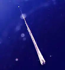 Aerogels are highly porous ultralight materials in which the liquid component of a gel has been replaced with a gas,[44] and are noteworthy for being solids that are extremely effective thermal insulators[43][45] with very low density.[46] Aerogels can be prepared in a variety of ways, and though most have been based on silica,[45] materials based on zirconia, titania, cellulose, polyurethane, and resorcinol—formaldehyde systems, amongst others, have been reported and explored.[47] The prime disadvantage of a silica-based aerogel is its fragility, though NASA has used them for insulation on Mars rovers,[48] the Mars Pathfinder and they have been used commercially for insulating blankets and between glass panes for translucent day-lighting panels.[45] Particulate gels prepared by the Stöber process can be dehydrated rapidly to produce highly effective silica aerogels, as well as xerogels.[15] They key step is the use of supercritical fluid extraction to remove water from the gel while maintaining the gel structure, which is typically done with supercritical carbon dioxide,[45] as NASA does.[23] The resulting aerogels are very effective thermal insulators because of their high porosity with very small pores (in the nanometre range). Conduction of heat through the gas phase is poor, and as the structure greatly inhibits movement of air molecules through the structure, heat transfer through the material is poor,[45] as can be seen in the image at right where heat from a Bunsen burner transfers so poorly that crayons resting on the aerogel do not melt.[43] Due to their low density, aerogels have also been used to capture interstellar dust particles with minimal heat changes in slowing them down (to prevent heat-induced changes in the particles) as part of the Stardust mission.[23]