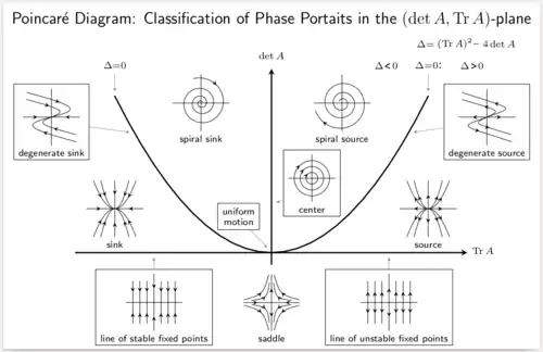 - If the eigenvalue has a two-dimensional eigenspace (geometric multiplicity 2), then the system is a central node (sometimes called a "star", or "dicritical node") which is either a source (when ) or a sink (when ).[2]