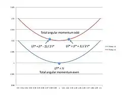 When the total angular momentum is odd, the minima cannot occur for The lowest energy states for odd total angular momentum occur when