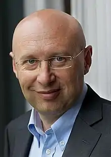 Stefan Walter Hell (German pronunciation: [ˈʃtɛfan ˈhɛl] ⓘ: born 23 December 1962) is a Romanian-German physicist and one of the directors of the Max Planck Institute for Multidisciplinary Sciences in Göttingen,[1] and of the Max Planck Institute for Medical Research in Heidelberg,[2] both of which are in Germany. He received the Nobel Prize in Chemistry in 2014 "for the development of super-resolved fluorescence microscopy", together with Eric Betzig and William Moerner.[3]