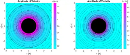 The solution of vorticity in cylindrical coordinates follows as: