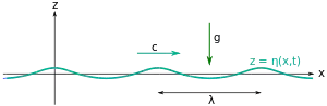 While, in the strict sense, Stokes wave refers to a progressive periodic wave of permanent form, the term is also used in connection with standing waves[3] and even random waves.[4][5]