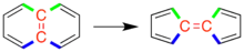 A Stone–Wales defect is a crystallographic defect that involves the change of connectivity of two π-bonded carbon atoms, leading to their rotation by 90° with respect to the midpoint of their bond.[1] The reaction commonly involves conversion between a naphthalene-like structure into a fulvalene-like structure, that is, two rings that share an edge vs two separate rings that have vertices bonded to each other.