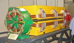 A storage ring is a type of circular particle accelerator in which a continuous or pulsed particle beam may be kept circulating, typically for many hours. Storage of a particular particle depends upon the mass, momentum, and usually the charge of the particle to be stored. Storage rings most commonly store electrons, positrons, or protons.[1]