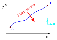 • The shift in the stream function, , is equal to the total volumetric flux, per unit thickness, through the surface that extends from point to point . Consequently if and only if and lie on the same streamline.