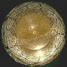 The SNO detector target consisted of 1,000 tonnes (1,102 short tons) of heavy water contained in a 6-metre-radius (20 ft) acrylic vessel. The detector cavity outside the vessel was filled with normal water to provide both buoyancy for the vessel and radiation shielding. The heavy water was viewed by approximately 9,600 photomultiplier tubes (PMTs) mounted on a geodesic sphere at a radius of about 850 centimetres (28 ft). The cavity housing the detector was the largest in the world at such a depth,[6] requiring a variety of high-performance rock bolting techniques to prevent rock bursts.