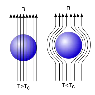 Superdiamagnetism is a feature of superconductivity. It was identified in 1933, by Walther Meissner and Robert Ochsenfeld, but it is considered distinct from the Meissner effect which occurs when the superconductivity first forms, and involves the exclusion of magnetic fields that already penetrate the object.