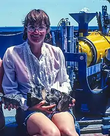 ![]() Tanya Atwater on the Galapagos Propagating Rift expedition, 1982. | |